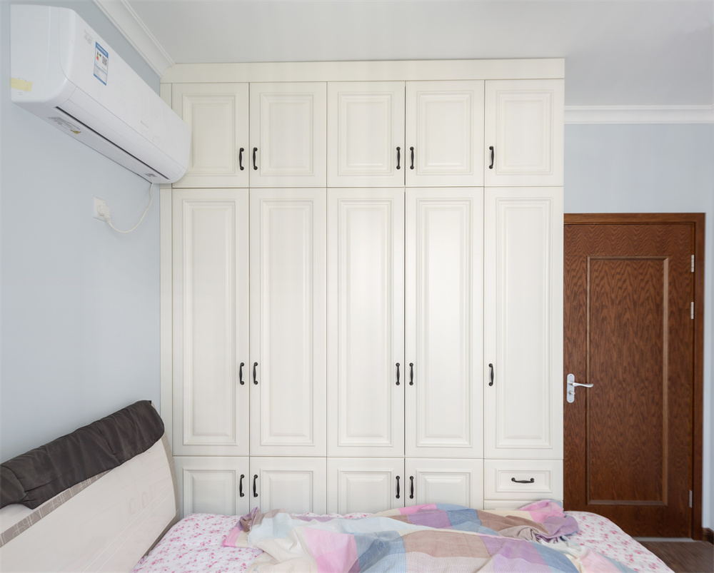 屋主在臥室內(nèi)做了內(nèi)嵌衣帽間的設計,屋主在衣帽間柜體的選擇上采用整體性原則,統(tǒng)一選用芬蘭白的柜體。這個衣帽間采用開放性的設計,轉(zhuǎn)角衣桿在接縫處沒有突出的部分,穩(wěn)定且承重能力強。