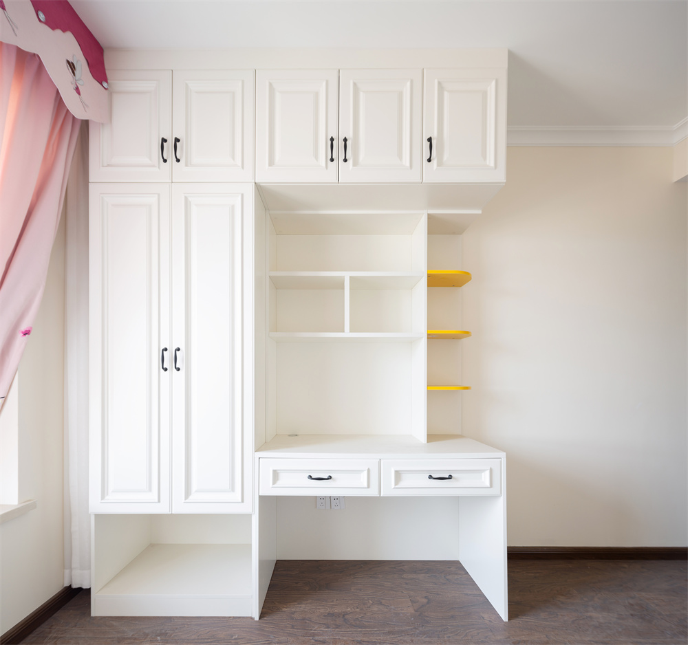 在設計的過程中考慮到兒童房的特點,在把手處做了圓滑包邊的設計,避免在打開柜子的過程受到傷害,并且柜身表面十分光滑,拐角處用半圓形的設計可最大限度上避免孩子出現(xiàn)磕碰的情況,為孩子今后的成長保駕護航。