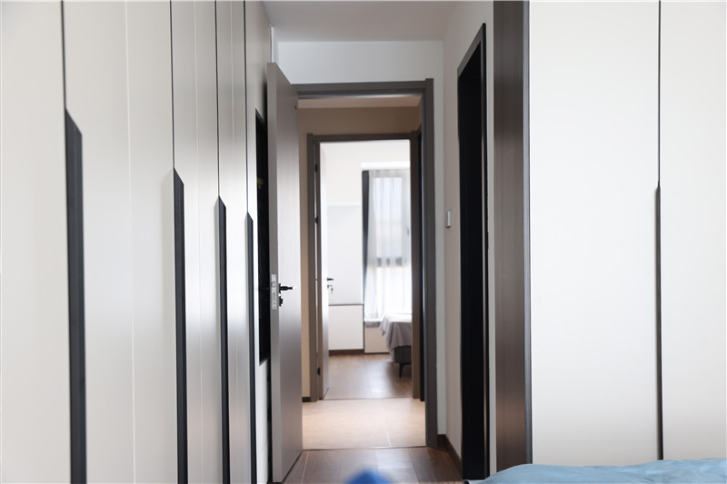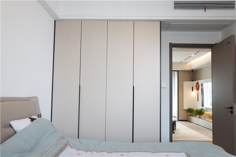 主臥與次臥根據(jù)不同人需求與生活習(xí)慣,都選用了客來福科技木紋+茶白,打造不同造型的柜體。衣柜擁有強(qiáng)大收納能力同時(shí),不影響空間顏值與人的活動(dòng)范圍。