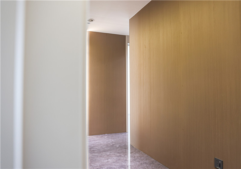 玄關柜與走道遵從著門墻柜一體化設計,選用客廳柜同種板材強調(diào)著整體的統(tǒng)一;在大面積的原木色使用下、在自然木質(zhì)紋理呈現(xiàn)下,帶給家居溫暖與平靜。