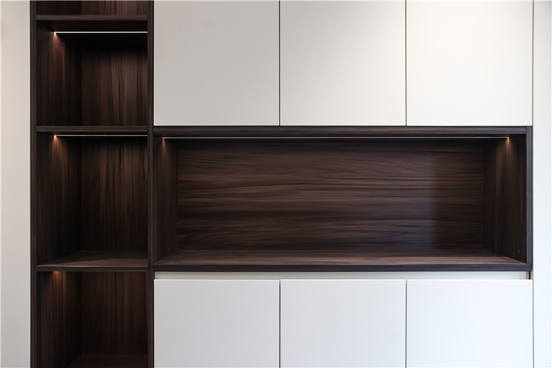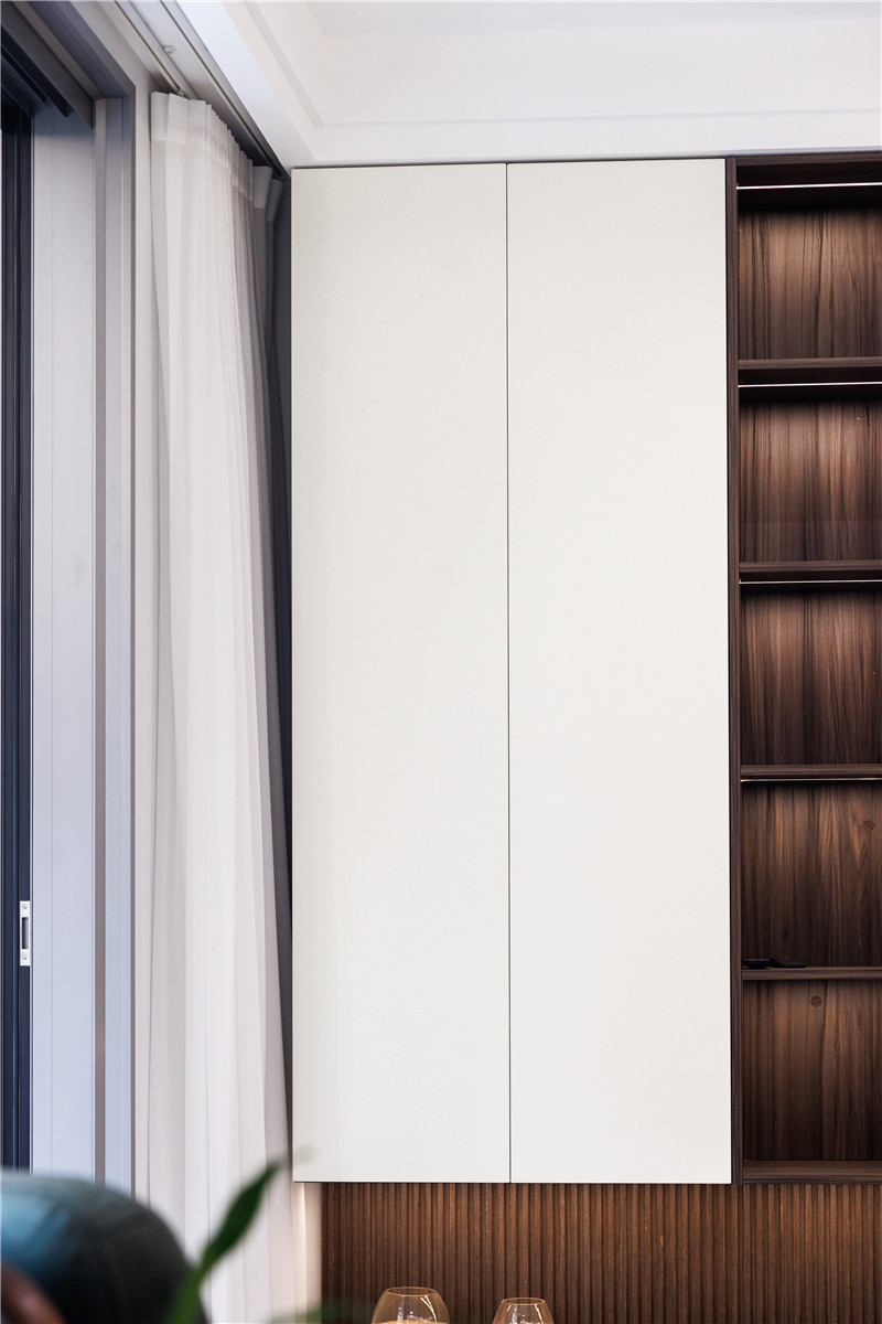 餐邊柜收起生活的繁雜,還原高端定制的有序與雅致。設(shè)計師延伸柜體轉(zhuǎn)角后在地柜上留了一個西廚的操作臺,中西廚結(jié)合,包容每一位家人的飲食習慣,讓用餐與烹飪自成一體,傾情享受他們的“食光”。