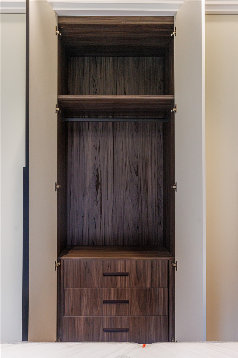 主臥和次臥的空間布局沒有太大差別,一柜到頂?shù)姆姨m白色系衣柜能夠打造清新的簡約風,內(nèi)部做抽屜分區(qū)收納或是做掛衣區(qū)都兼顧了實用主義。