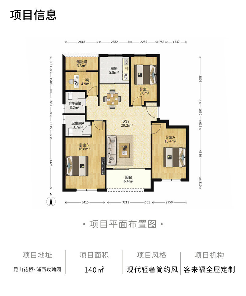 本案是來(lái)自昆山花橋的浦西玫瑰園,整體為140㎡現(xiàn)代輕奢簡(jiǎn)約風(fēng),屋主致力于追求生活品質(zhì)與現(xiàn)代審美的平衡,客來(lái)福家居創(chuàng)意定制,打造出奢而不華的品質(zhì)空間。
