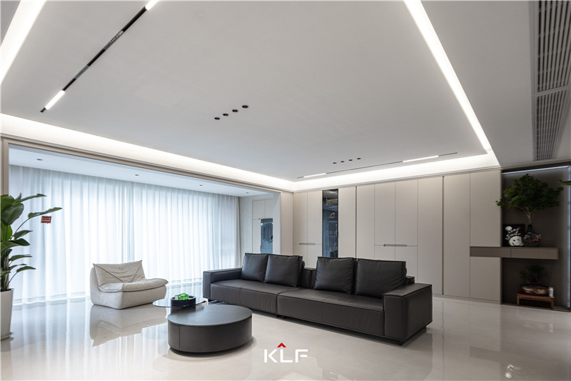 客廳、陽臺打通,橫廳構(gòu)造讓整體空間通透清新。