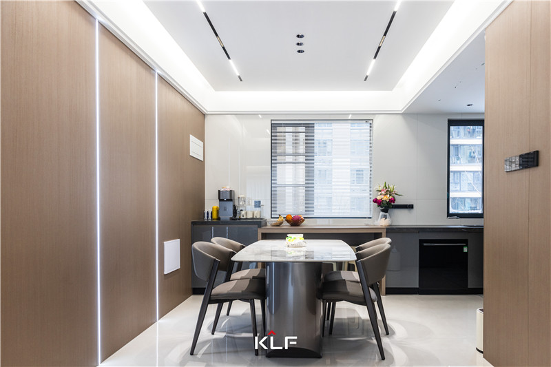 進(jìn)門配套餐桌椅巖板圓弧收邊,耐污防滲水的同時安全系數(shù)高。櫥柜以U型構(gòu)造發(fā)揮收納存儲功能,上淺下深構(gòu)造、門板為亮面,易清潔打理。