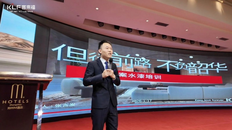 緊隨新品分享后,客來福設(shè)計(jì)督導(dǎo)主管張言發(fā)先生登臺(tái),聚焦“水漆工藝與應(yīng)用”展開專項(xiàng)培訓(xùn)。他深入剖析了水性涂料的環(huán)保特性、工藝優(yōu)勢及終端展示要點(diǎn),通過實(shí)際案例解析,強(qiáng)化了經(jīng)銷商對客來福健康產(chǎn)品體系的理解與推廣能力,為終端市場注入了堅(jiān)實(shí)的環(huán)保技術(shù)支撐。