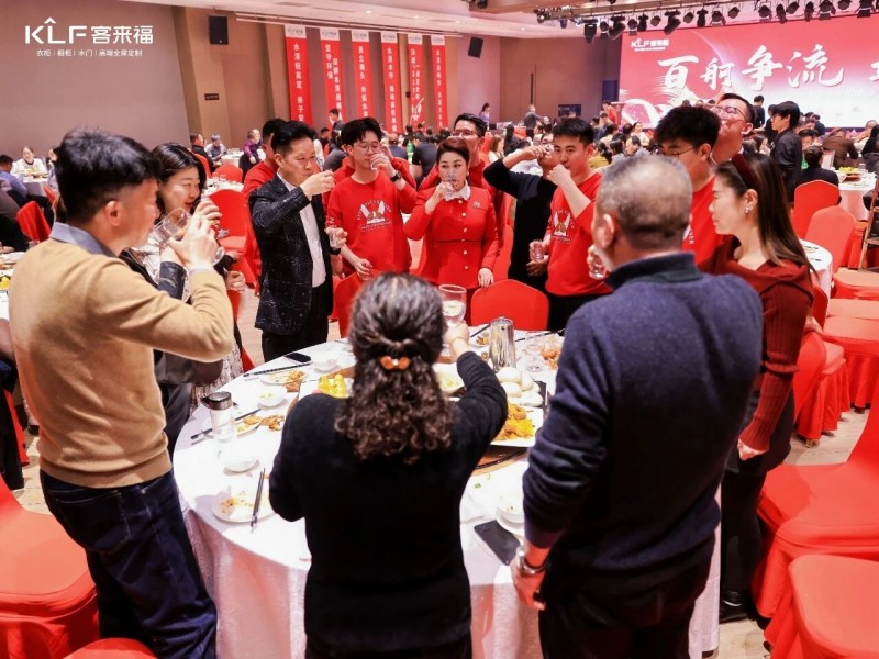 隨后,客來福董事長尹董與總裁魏總攜公司管理層與全場經(jīng)銷商家人一道舉杯相慶。這一刻,酒杯相碰的清脆聲響匯成共同承諾,展現(xiàn)了客來福上下同心、與經(jīng)銷商家人并肩攜手、以強(qiáng)大凝聚力共啟未來新局的堅(jiān)定決心與宏偉氣魄。